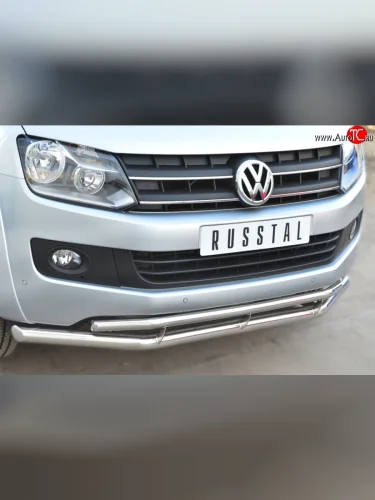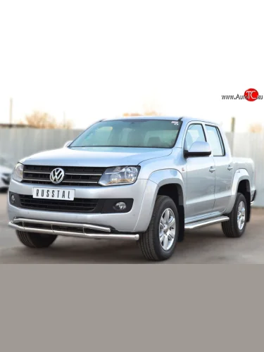 Защита переднего бампера (2 трубыØ63 и 42 мм, нержавейка) SLITKOFF Volkswagen Amarok дорестайлинг (2009-2016) В Кинешме Ивановской области