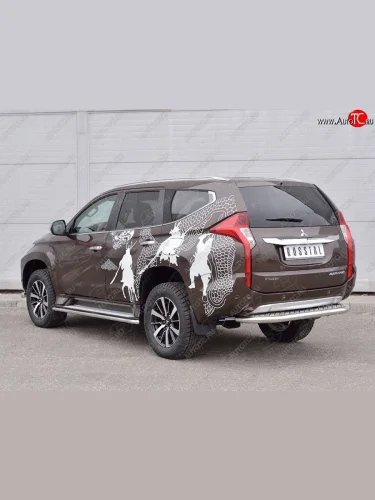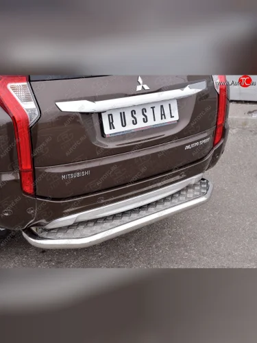 Защита заднего бампера (Ø63 мм, нержавейка) SLITKOFF Mitsubishi Pajero Sport (2015-2021) QE (лист - алюминий, профиль - нержавейка) В Кинешме Ивановской области